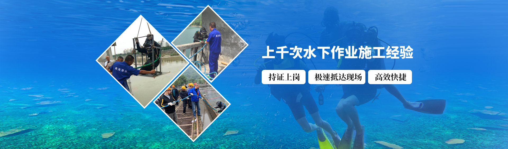 公司裝備優良先進,工作人員綜合素質高,業務技能優秀,曾獲業內多項殊榮,在業界廣受好評。重慶奧海水下作業有限公司致力于打造中國最大、最專業的水下作業公司,力圖做到更高、更大、更強。以優秀的企業文化帶動公司發展,從而更好的服務大眾。公司成立至今,始終秉承立足客戶、以誠為本的宗旨,致力于為客戶提供高效、優質、專業、及時的服務。
